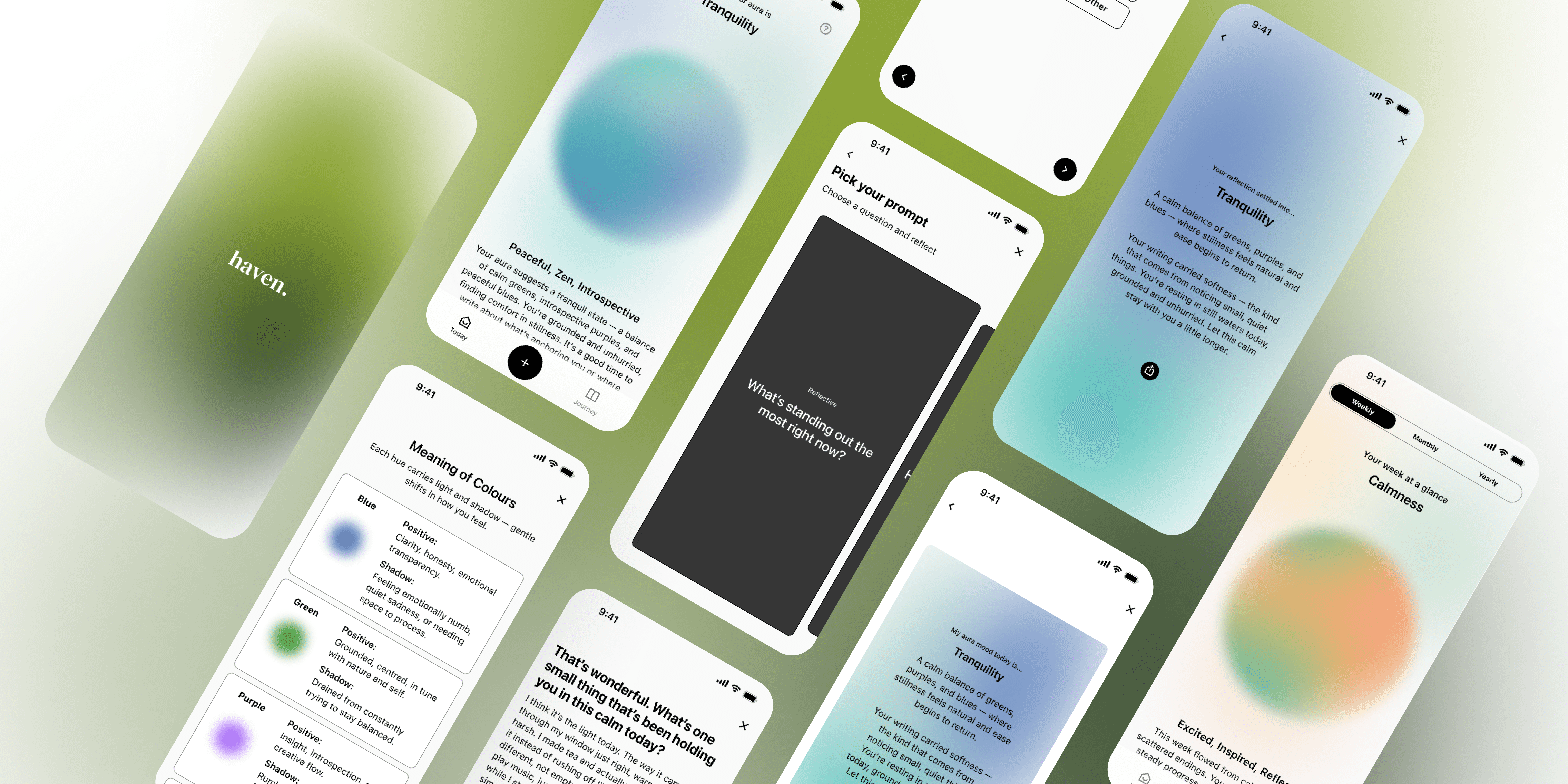 Haven is a gentle journaling app designed to support emotional reflection without pressure. Instead of relying on words alone, it uses colour as an emotionally intuitive cue to help users check in with themselves when language feels difficult.